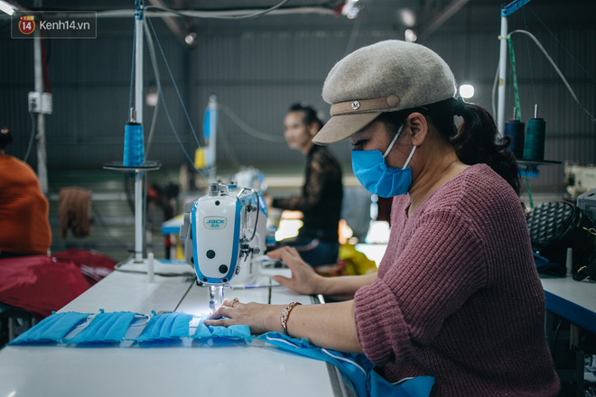 Cơ sở sản xuất áo mưa của chị Lê Thị Thắm (xã Hải Bối, huyện Đông Anh, Hà Nội) hơn 2 tuần vừa qua chuyển sang khâu may khẩu trang 4 lớp phát miễn phí cho người dân trên địa bàn, đề phòng dịch COVID-19. Toàn bộ hơn 20 nhân công được huy động tối đa, làm việc từ 7h30 đến 18h mỗi ngày, liên tục từ ngày 7/2. Chị dự tính sẽ phát hơn 40.000 khẩu trang đến tay bà con và trẻ nhỏ